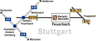 - An Kreuzung Borsigstraße links abbiegen (B295 Richtung Feuerbach,